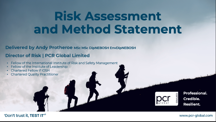 This course is delivered by one of the founders of PCR Global, and our Director of Risk and Resilience, Andrew Protheroe (MSc, CMIOSH, FIIRSM, CQP MCQI). Andrew is a well known external auditor and consultant of risk management standards, and has a wealth of experience of undertaking international third-party audits.
